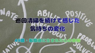 50代 転職 仕事 巡回清掃を続けて気づいた心の変化-49歳での転職がくれた余裕 49歳で巡回清掃に転職し、不安だらけだった日々。仕事を続ける中で感じた気持ちの変化や心の余裕を、実体験をもとに正直に綴ります。 50代 転職 仕事